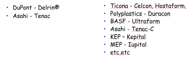 POM分為兩大類,一類為均聚甲醛,以杜邦和旭化成為代表,另一類為共聚甲醛,除了上述兩家,其他供應(yīng)商的產(chǎn)品基本都為共聚,旭化成是個(gè)NB公司,均聚和共聚都生產(chǎn)。這里簡單介紹一下均聚和共聚的特點(diǎn),以便更準(zhǔn)確的選擇材料。