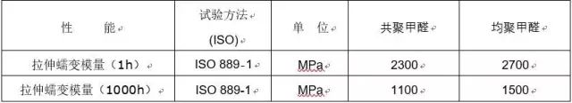從官方數(shù)據(jù)來看,共聚甲醛和均聚甲醛的蠕變強(qiáng)度對比如下: