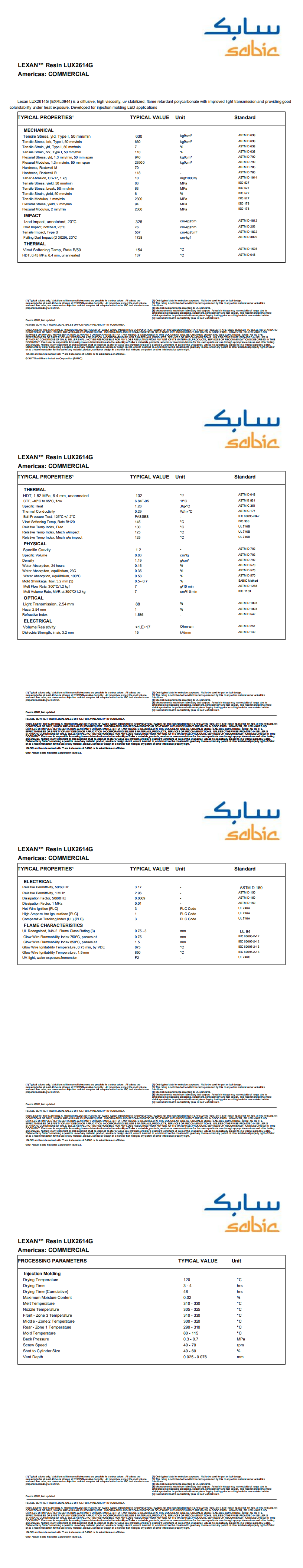 想了解更多的與LEXAN LUX2614G相關(guān)的物性參數(shù),請點擊 Lexan PC產(chǎn)品列表。