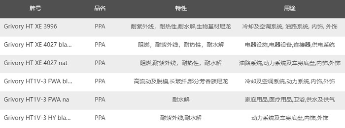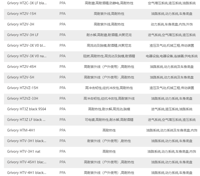 金屬取代材料 Grivory HT的主要牌號(hào):