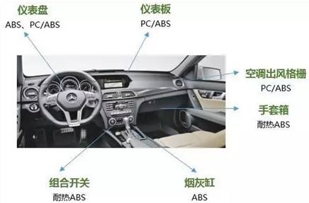 車用ABS材料主要涉及高端高性能ABS材料:耐熱ABS、低氣味ABS及合金、低光澤 ABS合金、吹塑級(jí)ABS、電鍍級(jí)ABS和抗靜電ABS。