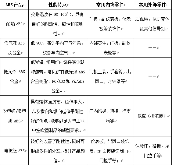 目前,ABS塑料在眾多車型的內(nèi)外飾件上均有較多應(yīng)用。