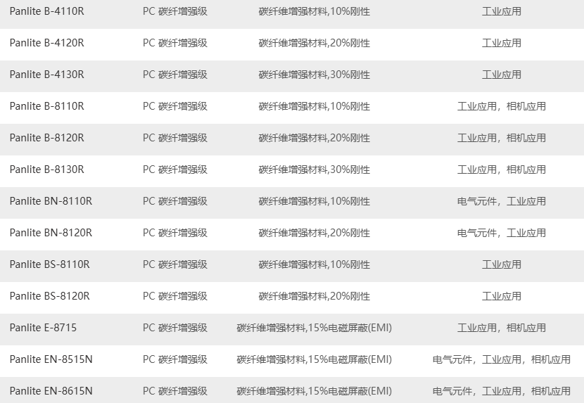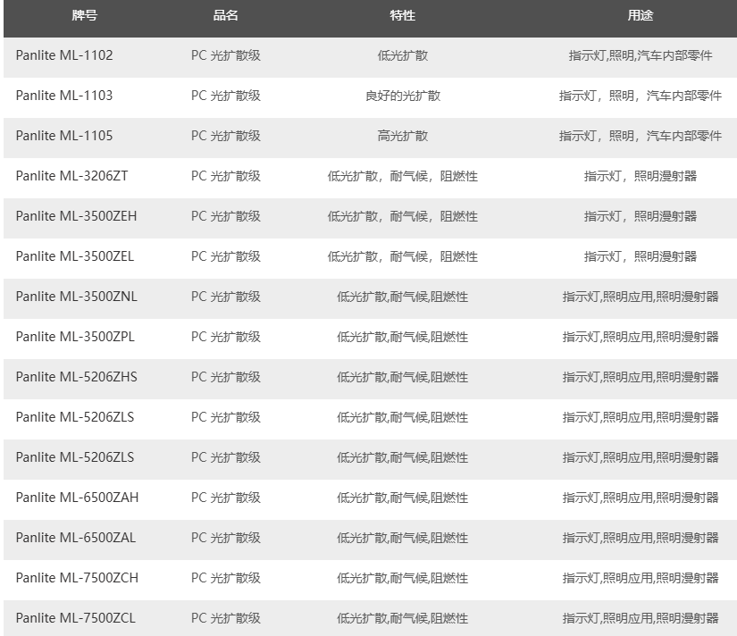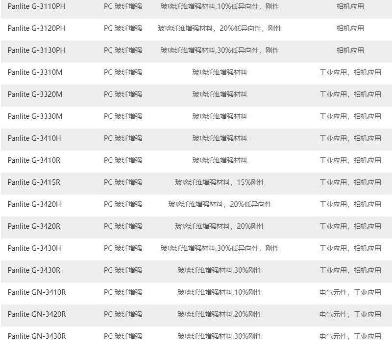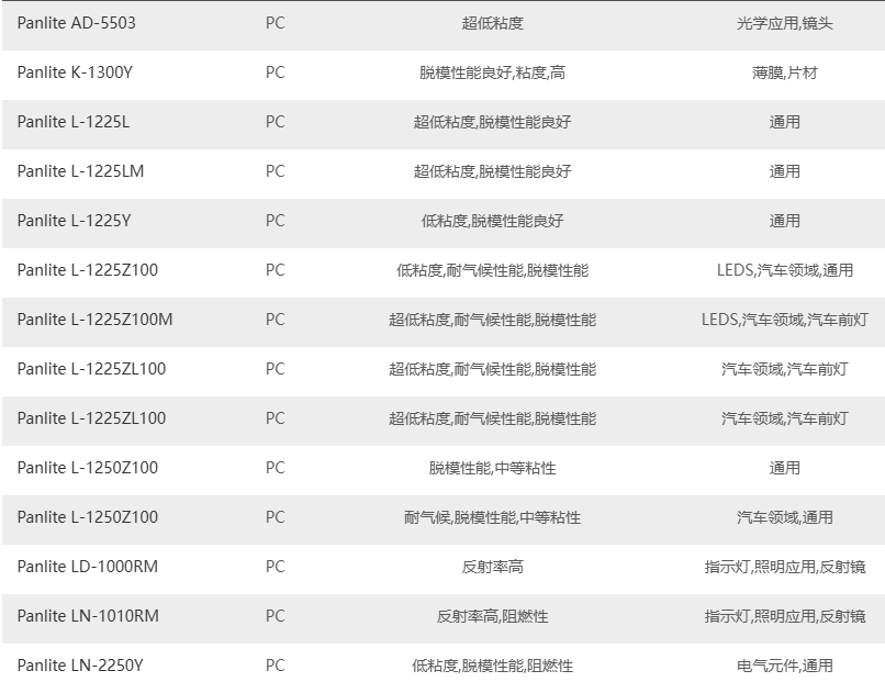 帝人 Panlite PC 一系列牌號及性能應(yīng)用可歸納如下: