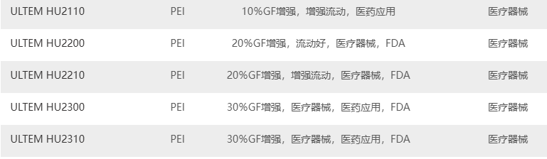 Ultem PEI 在醫(yī)療應(yīng)用中的產(chǎn)品牌號如下: