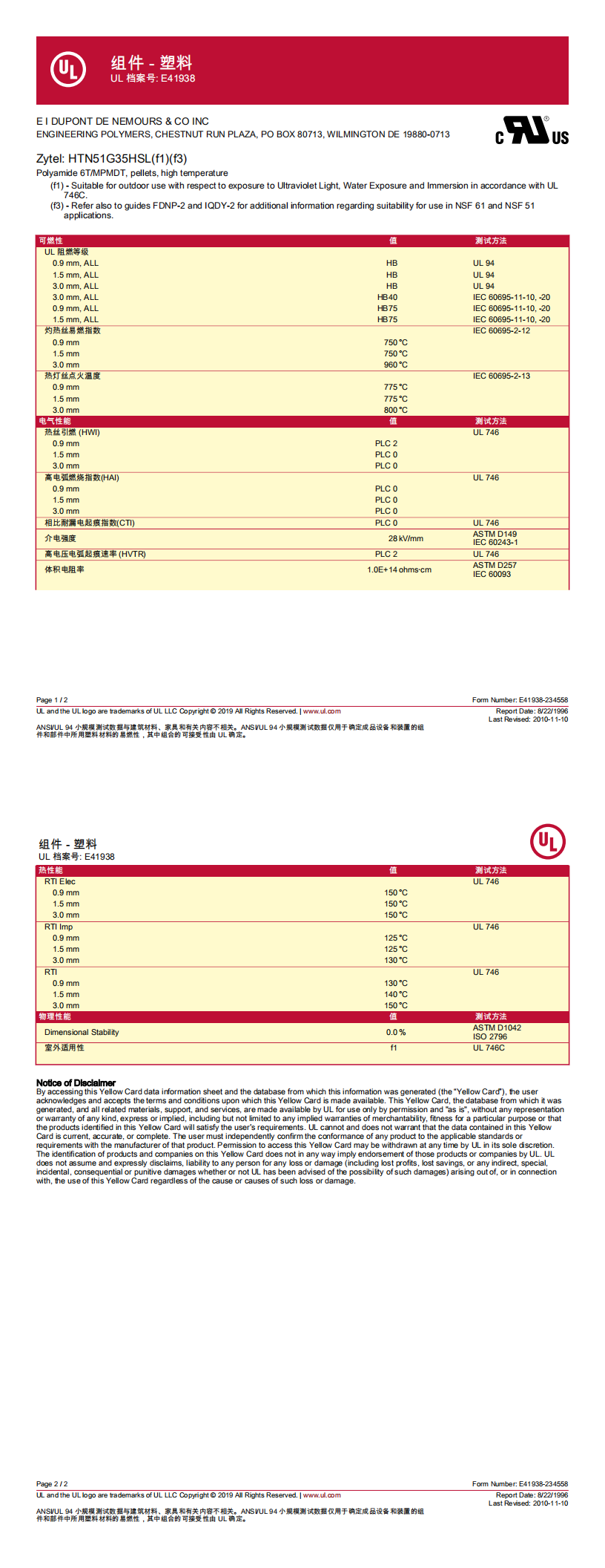 Zytel? HTN 高結(jié)構(gòu)規(guī)格