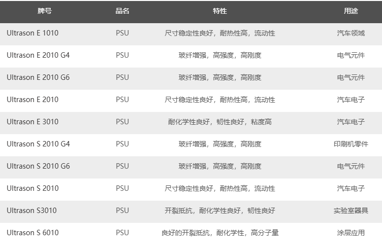 巴斯夫 Ultrason PSU塑料牌號: