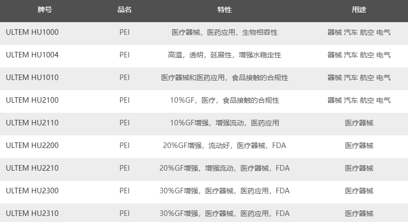 SABIC Ultem PEI醫(yī)療級ULTEM HU樹脂牌號及應用