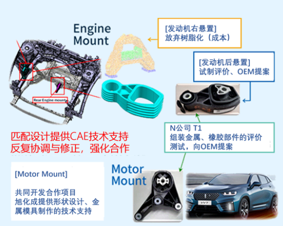 旭化成用用PA66樹脂代替鑄鋁制支架。旭化成采用聚酰胺(PA66)的LEONA?(雷歐娜?) GF增強(qiáng)級“14G50”開發(fā)設(shè)計(jì)了用于發(fā)動(dòng)機(jī)的支架和用于電機(jī)的支架。它具有優(yōu)異的耐熱性、高強(qiáng)度、高剛性和抗疲勞性。根據(jù)剛性和強(qiáng)度要求進(jìn)行了設(shè)計(jì),通過成型仿真技術(shù),準(zhǔn)確掌握了玻纖排向和熔接線的位置,并實(shí)施了反映該信息的應(yīng)力分析,對其力學(xué)性能進(jìn)行了評估。