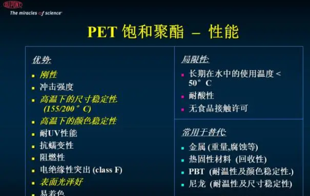 請注意杜邦的Rynite PET產(chǎn)品是全部為改性等級的,沒有非填充切片級材料: