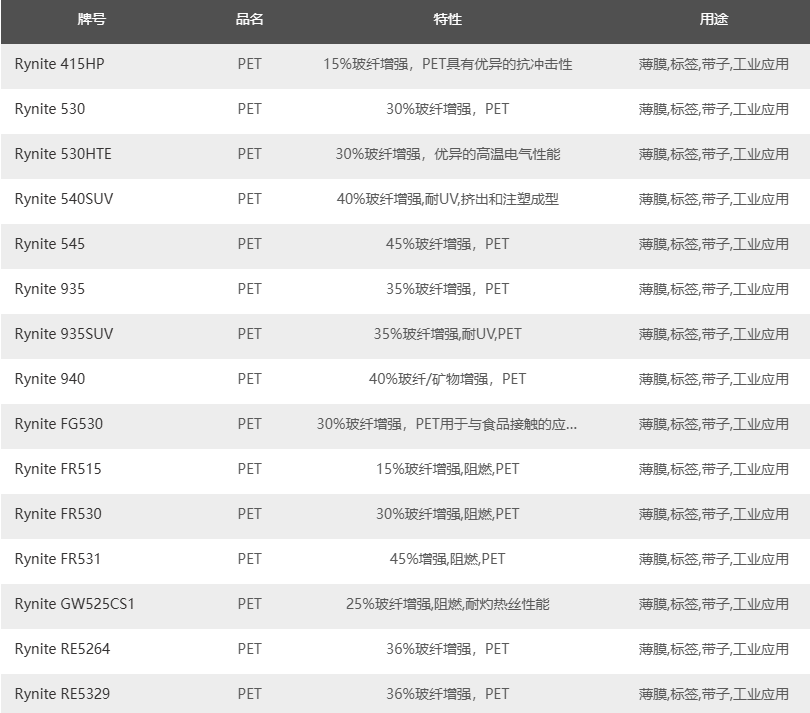 杜邦PET產(chǎn)品介紹 Rynite為杜邦PET產(chǎn)品的注冊商標(biāo)