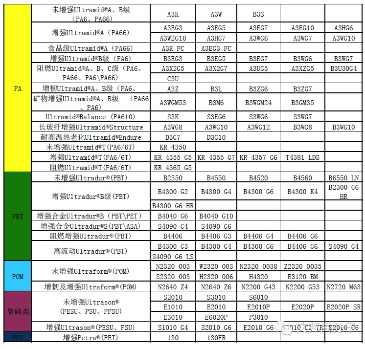 巴斯夫工程塑料的主要牌號: