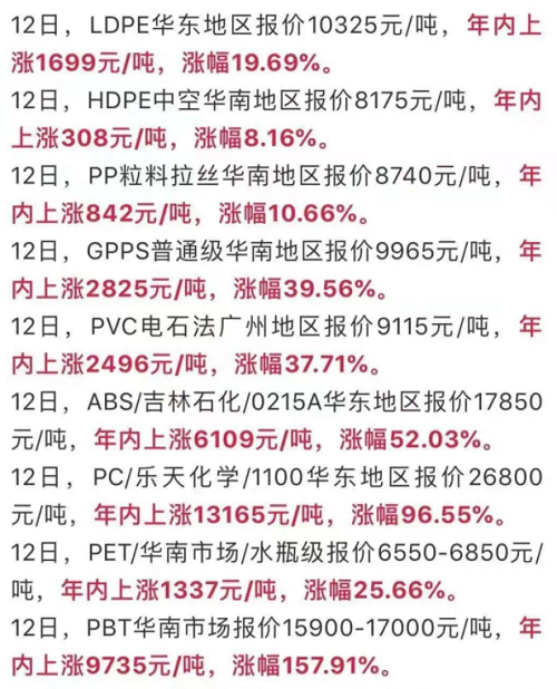 塑料PA66延遲交貨!多種塑料正值歷史最高位