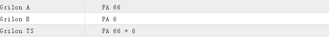 Grilon A PA 66 Grilon B PA 6 Grilon TS PA 66 + 6