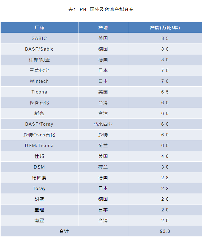 PBT 材料主要產(chǎn)能及其分布