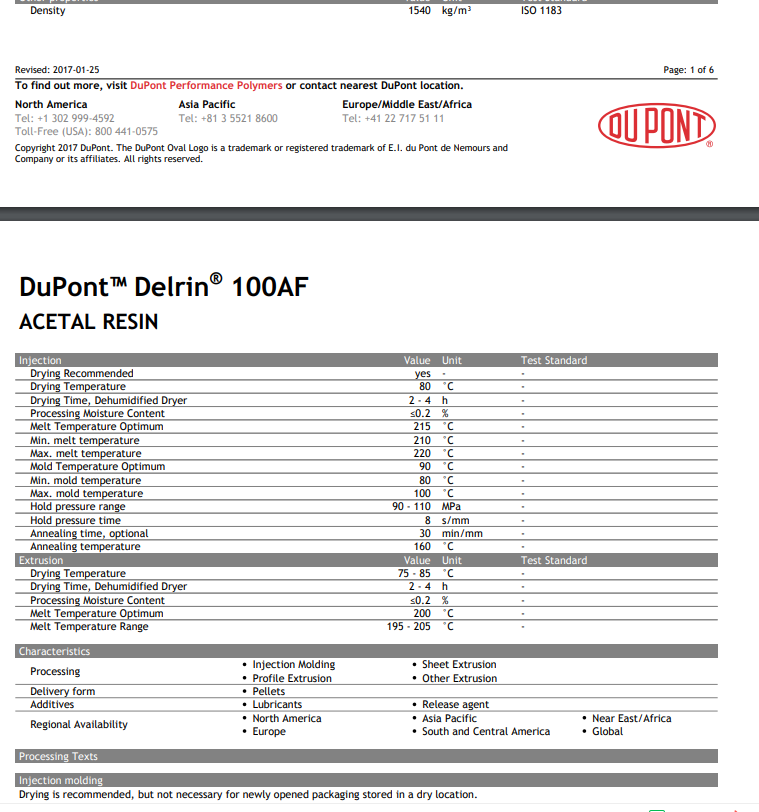 美國杜邦POM Delrin 100AF 聚甲醛樹脂通常應用于具有嚴苛要求的汽車、家用電器、運動、工業(yè)工程、電子和消費品工業(yè)。