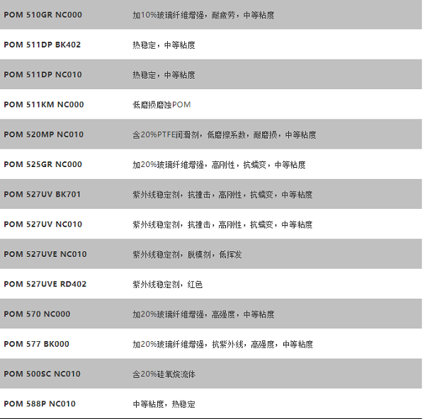 杜邦POM工程塑料的主要牌號