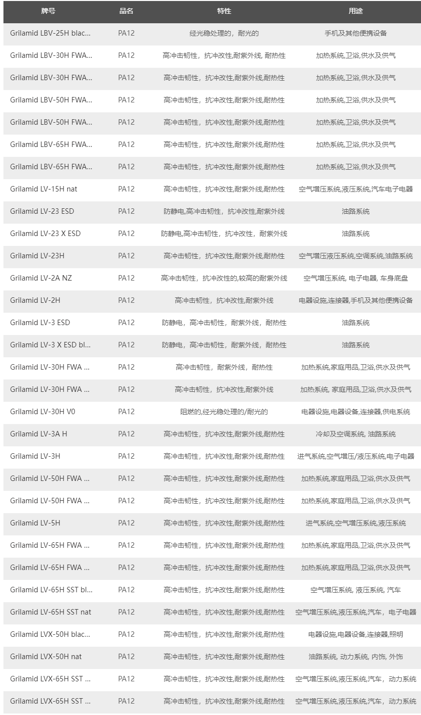 瑞士EMS- Grilamid L----PA12系列的產(chǎn)品牌號介紹及性能應用