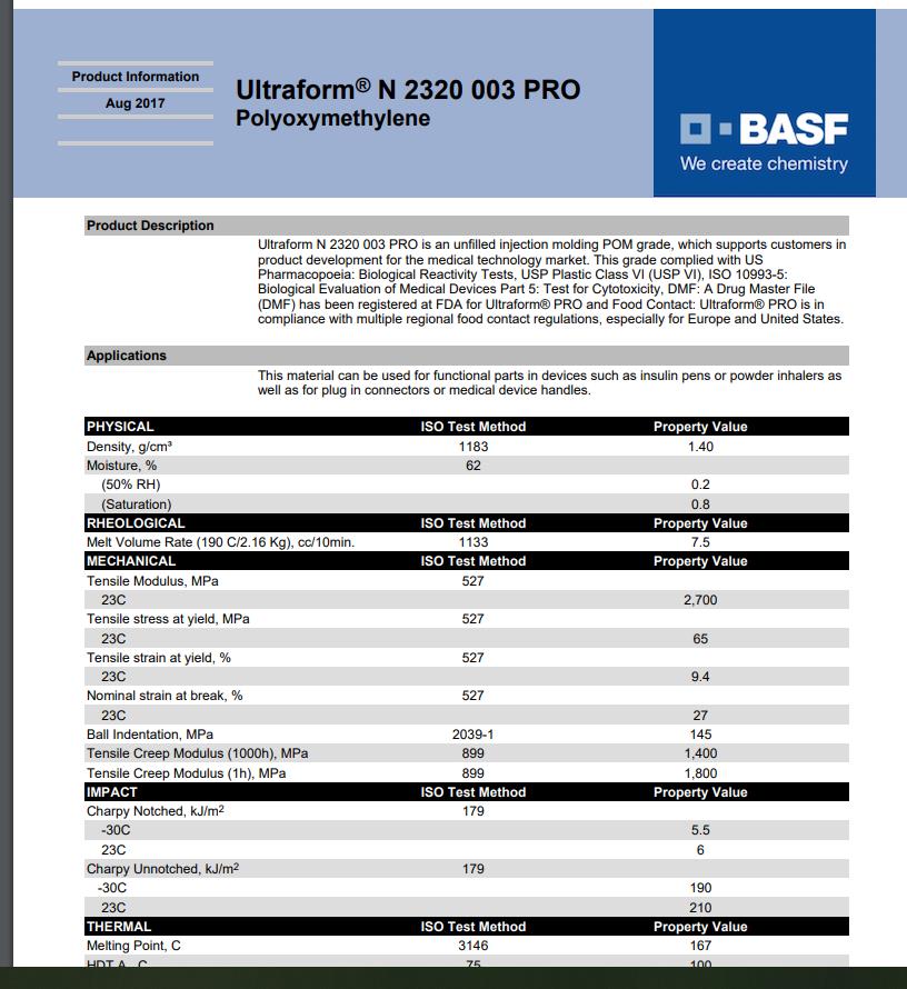 一級(jí)代理商?hào)|莞市昊恩塑膠貿(mào)易有限公司提供以德國(guó)-巴斯夫塑料Ultraform N 2320 003物性表參數(shù):