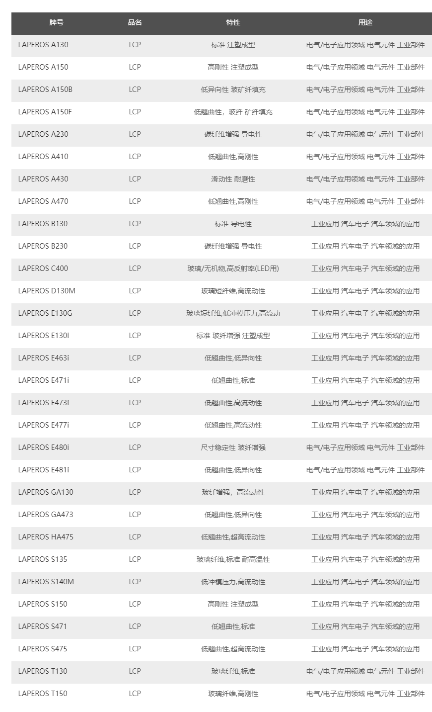 日本-寶理塑料 Laperos LCP主要性能及牌號(hào)大全: