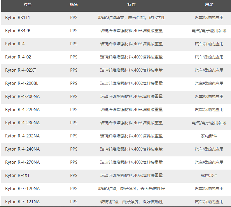 索爾維Ryton PPS系列產品的牌號、性能參數及主要應用