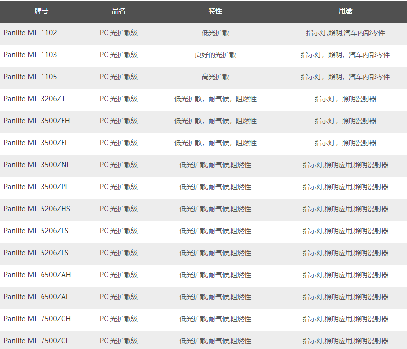 帝人Panlite 光擴散級(PC樹脂)的主要產(chǎn)品牌號及應(yīng)用
