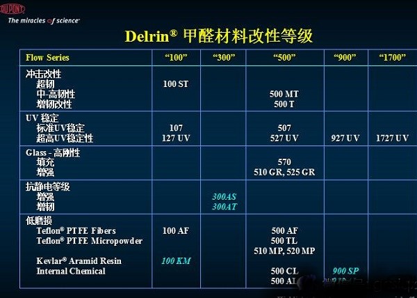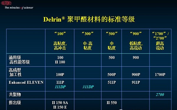 市售的杜邦POM產(chǎn)品主要有如下等級(jí):