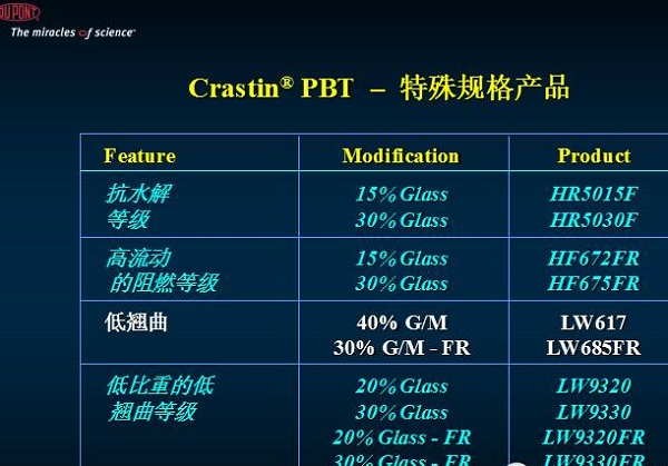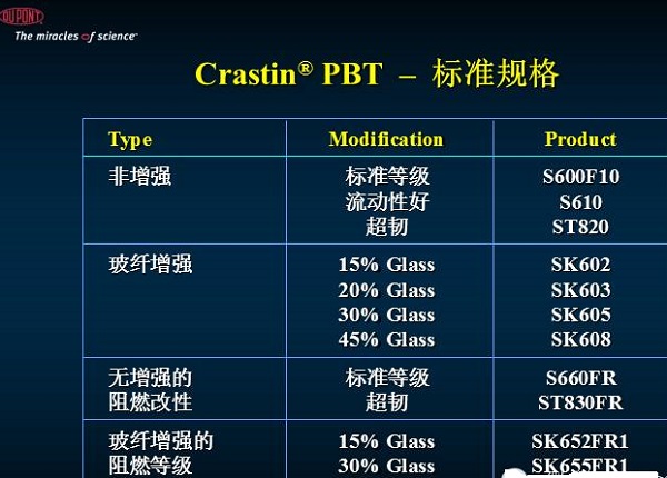 杜邦Crastin PBT標(biāo)準(zhǔn)規(guī)格及普通改性款